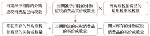 當(dāng)期準(zhǔn)予扣除的外購(gòu)應(yīng)稅消費(fèi)品已納消費(fèi)稅稅款的計(jì)算公式: