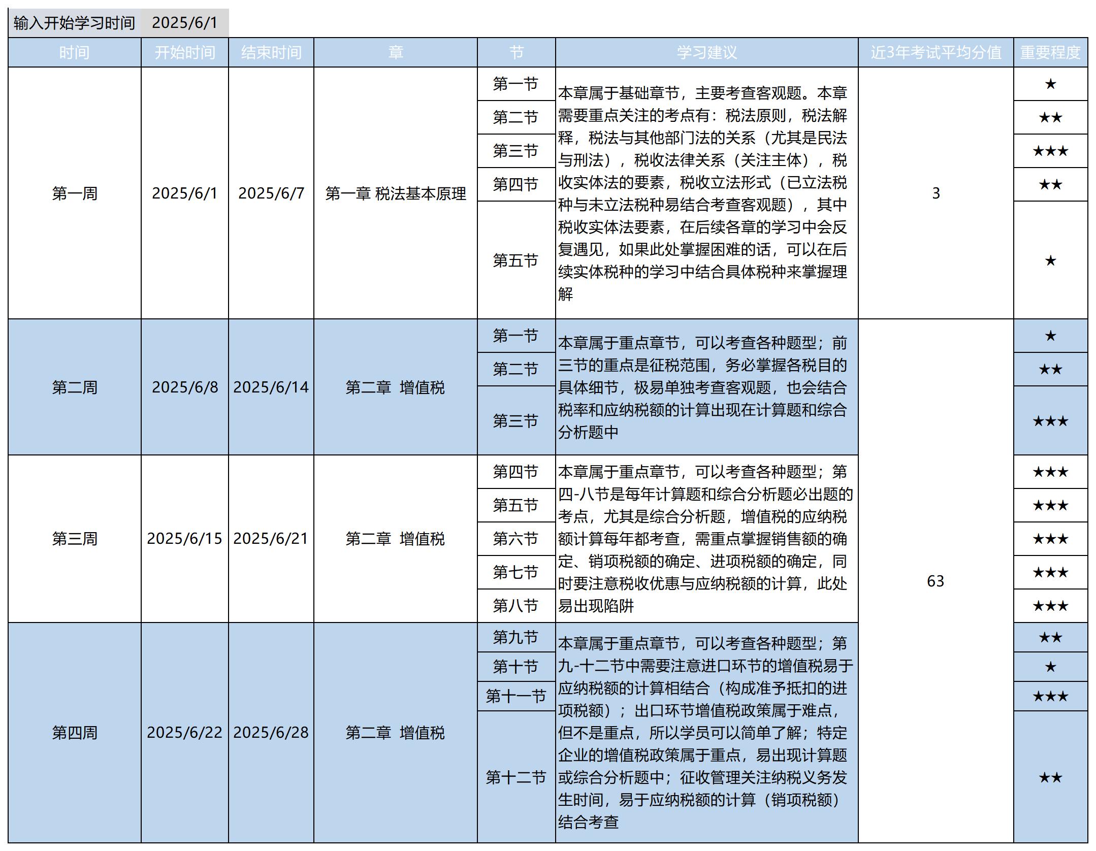 25年稅務(wù)師《稅法一》動(dòng)態(tài)學(xué)習(xí)計(jì)劃表,一鍵生成專屬計(jì)劃!