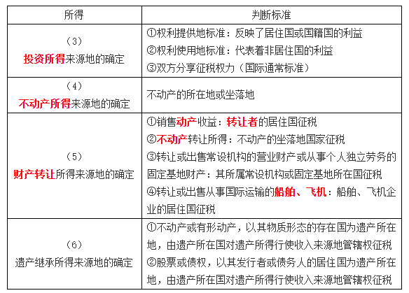 2.約束收入來源地管轄權(quán)的國際慣例 (1)經(jīng)營所得的來源地的確定 (2)勞務(wù)所得來源地的確定 (3)投資所得來源地的確定 (4)不動產(chǎn)所得來源地的確定 (5)財(cái)產(chǎn)轉(zhuǎn)讓所得來源地的確定 (6)遺產(chǎn)繼承所得來源地的確定 |