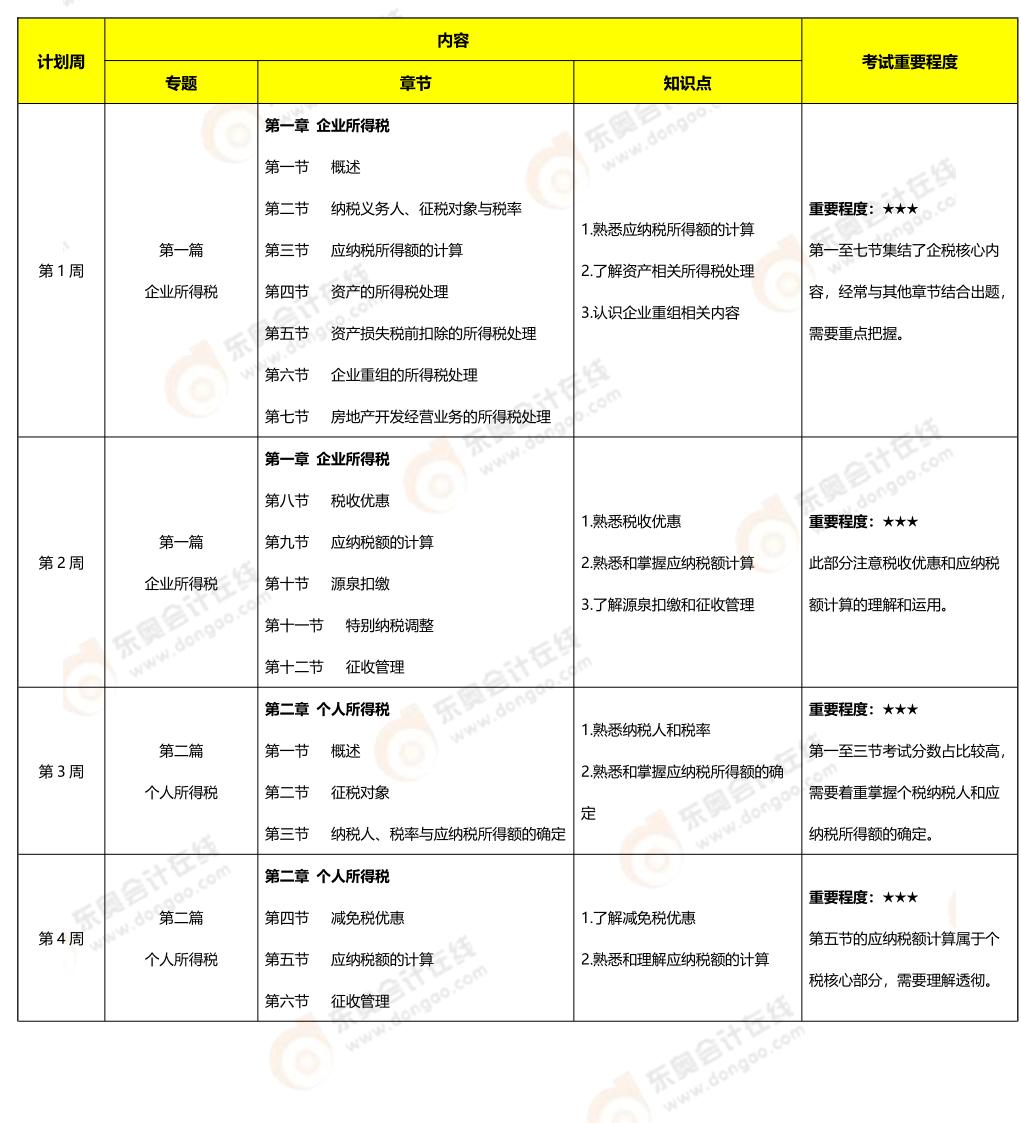稅法二學(xué)習(xí)周計(jì)劃