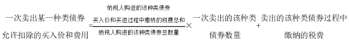 轉(zhuǎn)讓債券,采用加權(quán)平均法確定其應(yīng)予減除的財(cái)產(chǎn)原值和合理費(fèi)用。即:以納稅人購進(jìn)的同一種類債券買入價(jià)和買進(jìn)過程中繳納的稅費(fèi)總和,除以納稅人購進(jìn)的該種類債券數(shù)量之和,乘以納稅人賣出的該種類債券數(shù)量,再加上賣出的該種類債券過程中繳納的稅費(fèi):