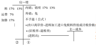 或者=(出口貨物離岸價(jià)×外匯牌價(jià)-進(jìn)口免稅料件組成計(jì)稅價(jià)格)×(征稅率-退稅率)