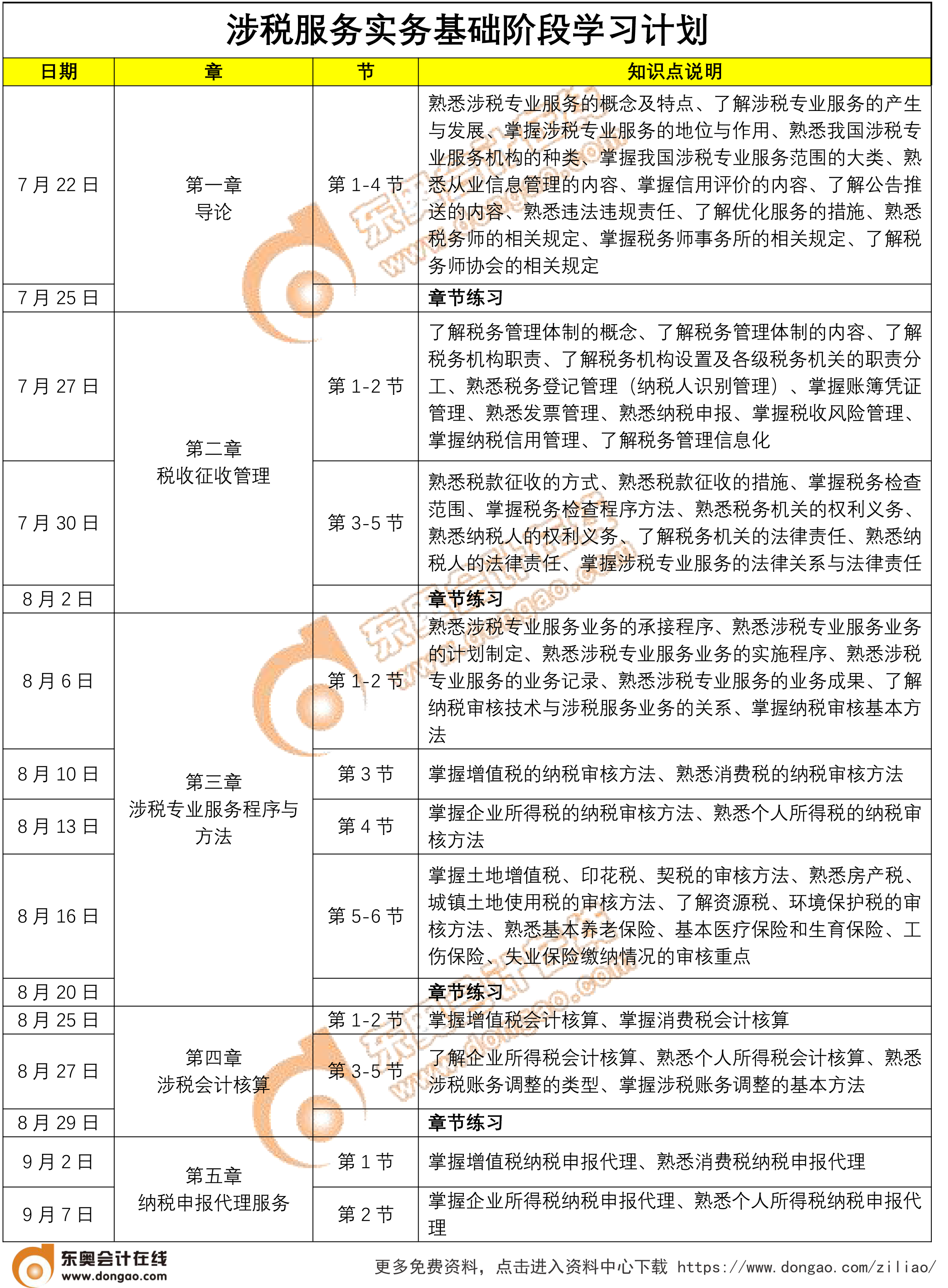 《涉稅服務(wù)實(shí)務(wù)》基礎(chǔ)階段學(xué)習(xí)計(jì)劃