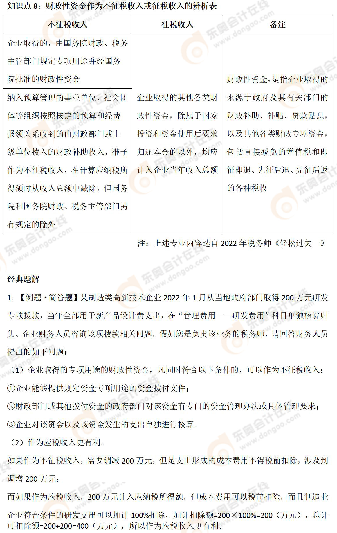 知識點:財政性資金作為不征稅收入或征稅收入的辨析表