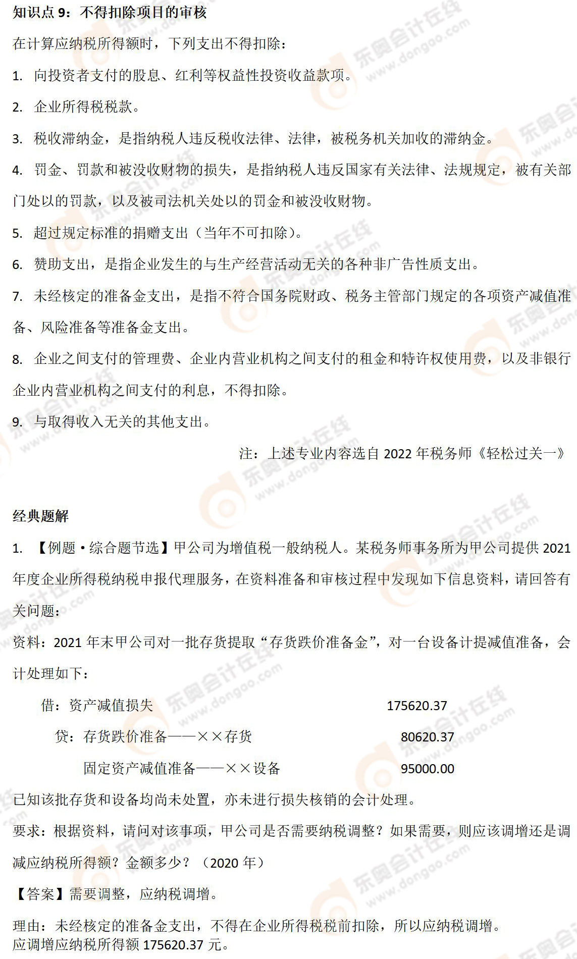 2022稅務(wù)師《涉稅服務(wù)實務(wù)》易錯易混知識點:不得扣除項目的審核