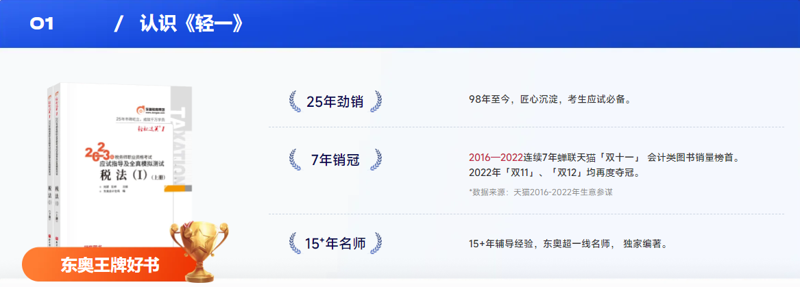 2022年稅務(wù)師考試成績已經(jīng)公布了(除二次延考地區(qū)),現(xiàn)階段各位考生要把重心全部放到備考2023年稅務(wù)師考試上了。2023年新考季,東奧稅務(wù)師《輕一》也完成了全新升級。接下來東奧會計在線就利用三步,帶各位考生全面了解2023年新版稅務(wù)師《輕一》,各位考生請看下文吧!