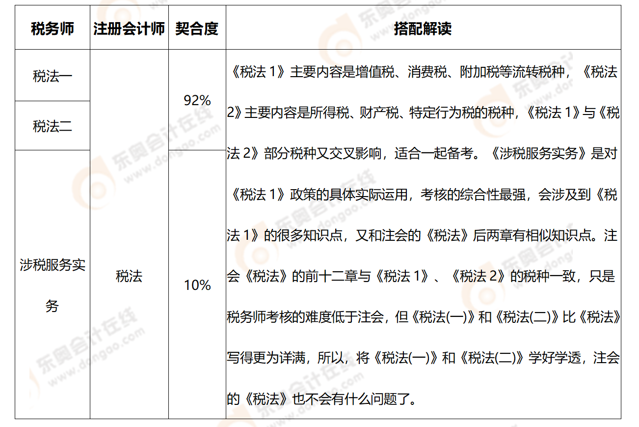 東奧小編為大家整理了注會和稅務(wù)師考試內(nèi)容對比,僅供參考: