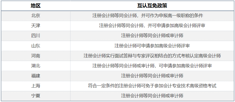 二、各地cpa與職稱互認(rèn)互免政策一覽
