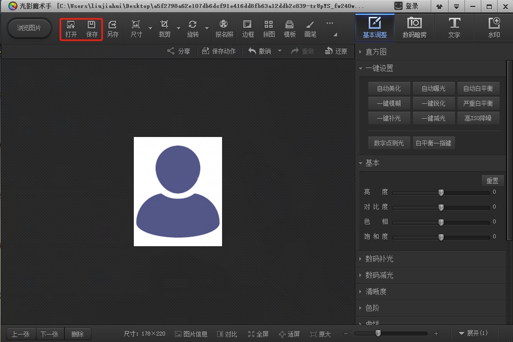 第一步:下載“光影魔術(shù)手”,打開需要上傳的照片。(光影魔術(shù)手中的“報名照”功能自動裁剪的照片尺寸不符合網(wǎng)報系統(tǒng)后臺上傳要求,本文為大家梳理手動處理版)