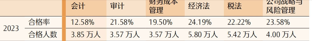 2024年注冊會計師考試剛剛結(jié)束,考試通過率尚未公布,讓我們來看看23年注冊會計師專業(yè)階段各科目通過率情況: