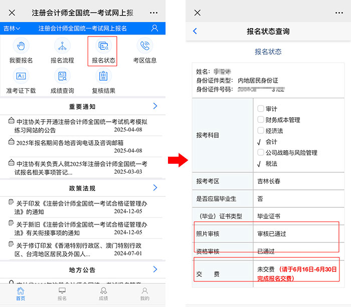 2025年注冊會計師考試報名狀態(tài)怎么看?怎樣才算報名成功?