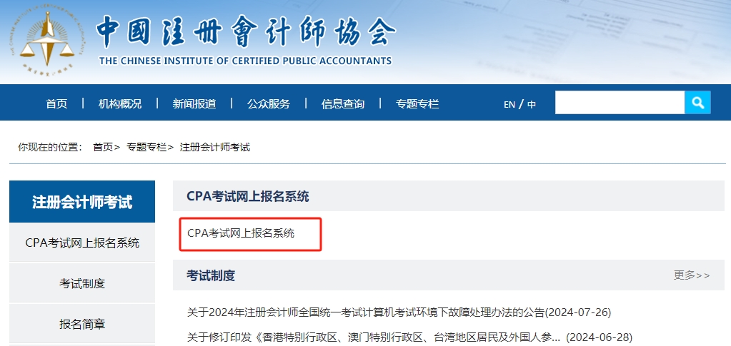 步驟2:進入“CPA考試網(wǎng)上報名系統(tǒng)”。