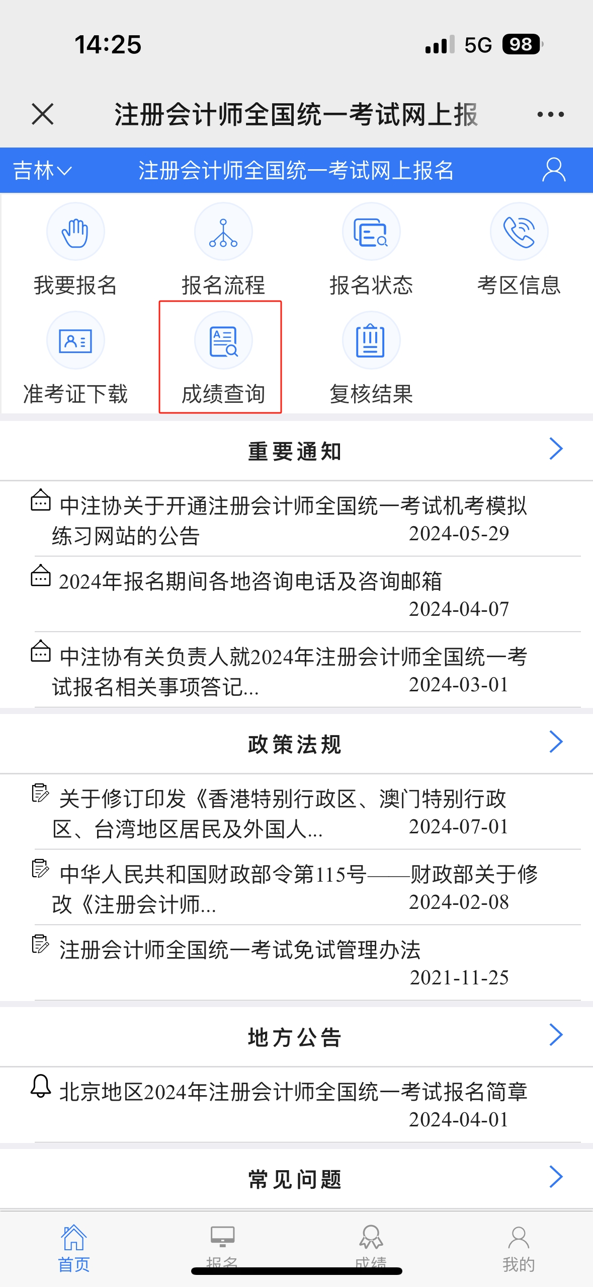 注冊會計師成績查詢流程圖解