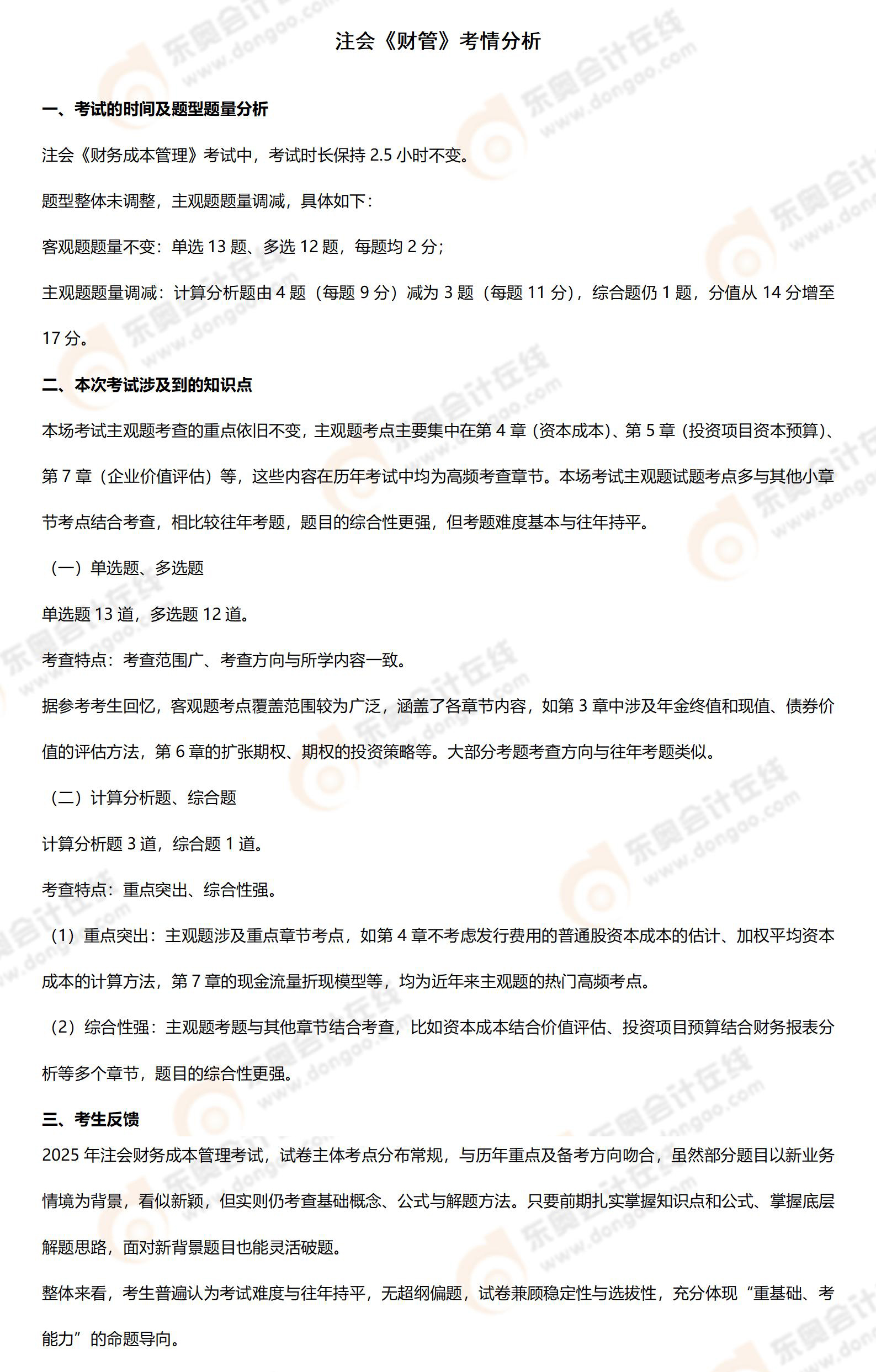 2025年注冊會計師財管考情分析及考點總結(考生回憶版)
