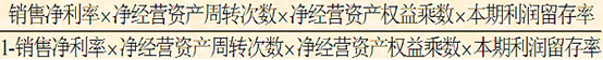 =銷售凈利率×凈經(jīng)營資產(chǎn)周轉(zhuǎn)次數(shù)×期初權(quán)益期末凈經(jīng)營資產(chǎn)乘數(shù)×本期利潤留存率