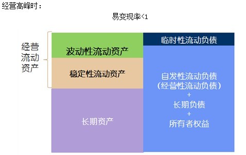 激進(jìn)型籌資政策下臨時(shí)性負(fù)債在企業(yè)全部資金來源中所占比重大于配合型籌資政策,即使在季節(jié)性低谷也可能存在臨時(shí)性負(fù)債,它是一種收益性和風(fēng)險(xiǎn)性均較高的營(yíng)運(yùn)資本籌資政策。