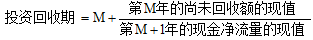投資回收期=M+(第M年的尚未回收額/第M+1年的現(xiàn)金凈流量)