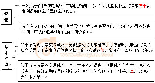 【提示】稅差理論說(shuō)明了當(dāng)股利收益稅率與資本利得稅率存在差異時(shí),將使股東在繼續(xù)持有股票以期取得預(yù)期資本利得與立即實(shí)現(xiàn)股利收益之間進(jìn)行權(quán)衡。