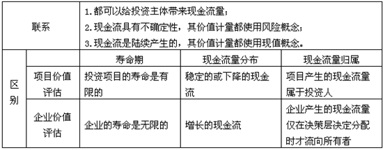 【知識(shí)點(diǎn)】:企業(yè)價(jià)值評(píng)估與項(xiàng)目價(jià)值評(píng)估的比較