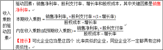 目標(biāo)企業(yè)股權(quán)價(jià)值=可比企業(yè)平均收入乘數(shù)×目標(biāo)企業(yè)的銷售收入 |
