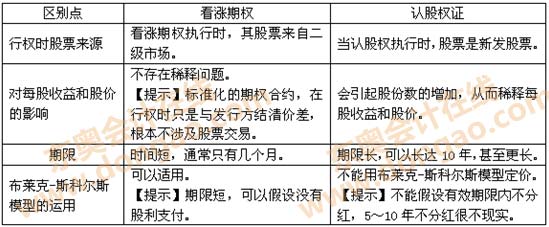 認(rèn)股權(quán)證與看漲期權(quán)的區(qū)別