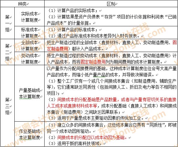 產(chǎn)品成本計(jì)算制度的類型(注意不同成本計(jì)算制度之比較):