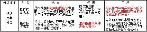 2.標(biāo)準(zhǔn)成本按其適用期,分為現(xiàn)行標(biāo)準(zhǔn)成本和基本標(biāo)準(zhǔn)成本。