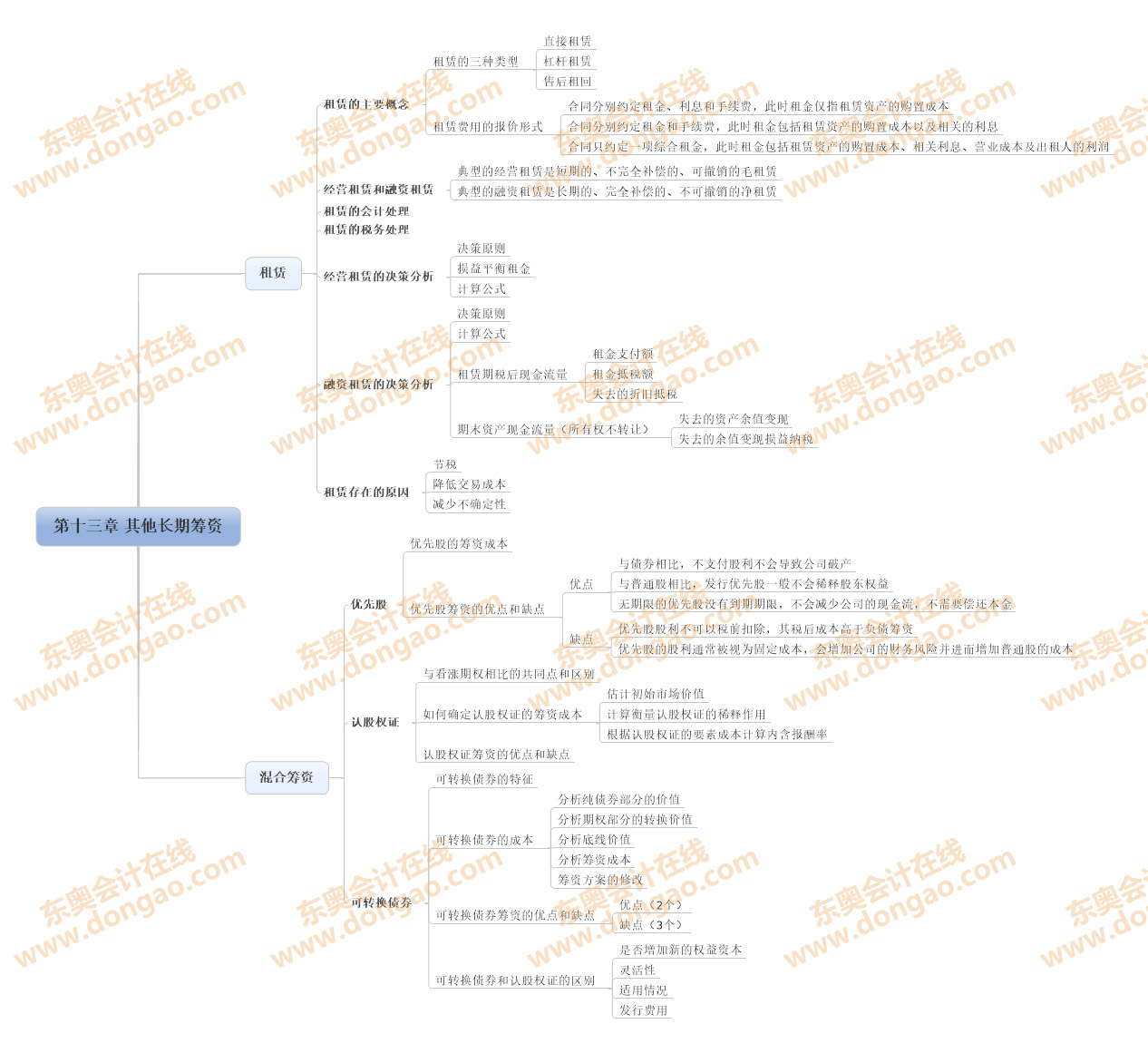 2014注會《財務(wù)成本管理》第十三章其他長期籌資思維導(dǎo)圖