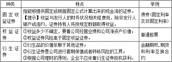 (三)金融資產(chǎn)的種類(按其收益的特征分)