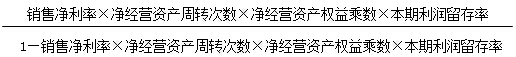 =銷售凈利率×凈經(jīng)營(yíng)資產(chǎn)周轉(zhuǎn)次數(shù)×期初權(quán)益期末凈經(jīng)營(yíng)資產(chǎn)乘數(shù)×本期利潤(rùn)留存率