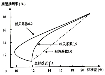 (1)兩種投資組合的投資機會集曲線描述不同投資比例組合的風險和報酬的關系;