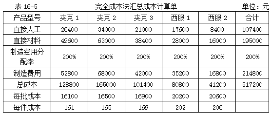 該公司本月每種款式的產(chǎn)量和直接成本如表16-3所示。