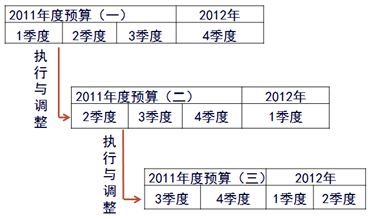 逐季滾動方式是指在預算編制過程中,以季度為預算的編制和滾動單位,每個季度調整一次預算的方法。 |