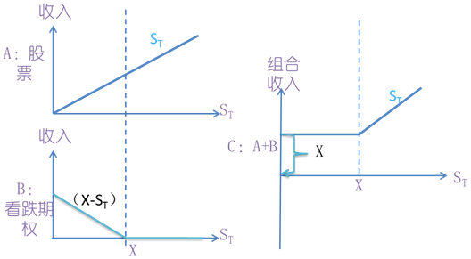 股票加看跌期權組合,稱為保護性看跌期權。是指購買1份股票,同時購買該股票1份看跌期權。