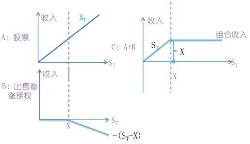 股票加空頭看漲期權組合,是指購買1份股票,同時出售該股票1份看漲期權。