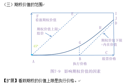 3.看漲期權(quán)的價(jià)值上限是股價(jià),看跌期權(quán)的價(jià)值上限是執(zhí)行價(jià)格。