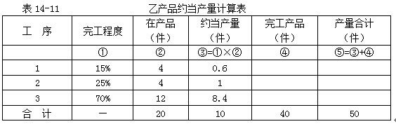 (1)計算501批乙產品在產品約當產量,如表14-11所示。