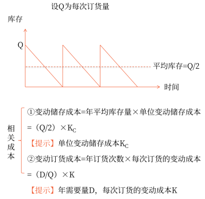 最佳經(jīng)濟(jì)訂貨批量是變動(dòng)儲(chǔ)存成本線與變動(dòng)訂貨成本線交叉點(diǎn)所對(duì)應(yīng)的庫(kù)存量。
