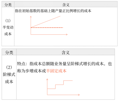 混合成本 | 成本總額隨業(yè)務(wù)量變動而變動,但不成正比例關(guān)系 |