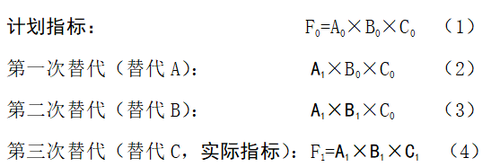 (3) | 確定驅(qū)動(dòng)因素的替代順序 | 在測(cè)定各因素變動(dòng)對(duì)分析指標(biāo)F的影響程度,可按順序進(jìn)行: