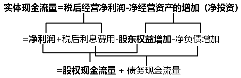 實(shí)體角度 | 實(shí)體現(xiàn)金流量 | 等于 | 稅后經(jīng)營(yíng)凈利潤(rùn) | 減 | 凈經(jīng)營(yíng)資產(chǎn)增加 |
