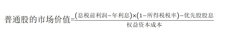 企業(yè)價(jià)值=普通股的市場價(jià)值S+長期債務(wù)的價(jià)值B+優(yōu)先股的價(jià)值P