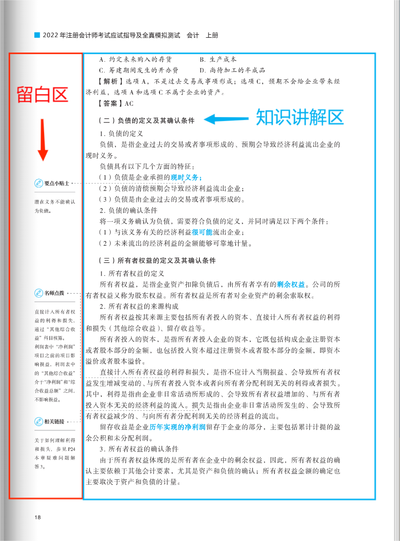 但康奈爾筆記法雖好,卻需要考生從頭開始記錄,整理,歸納,如果總結(jié)得不到位,反而事與愿違。對于偏好記筆記學(xué)習(xí)的考生來說,東奧出品的《輕松過關(guān)?1》為了滿足學(xué)員記筆記的需求,對頁面內(nèi)容進(jìn)行了“二八分欄”的革新?!鞍恕笔侵R講解區(qū),包括知識點(diǎn)、習(xí)題等?!岸笔橇舭讌^(qū),會集中標(biāo)注重難知識點(diǎn)、名師點(diǎn)撥,減輕了學(xué)員記筆記的時(shí)間支出。其他空白區(qū)域,還可供學(xué)員自行標(biāo)注筆記,清晰明了。另外,學(xué)員還可掃碼觀看名師講解的視頻,這一切都讓這本教輔圖書成為了一本備考利器。