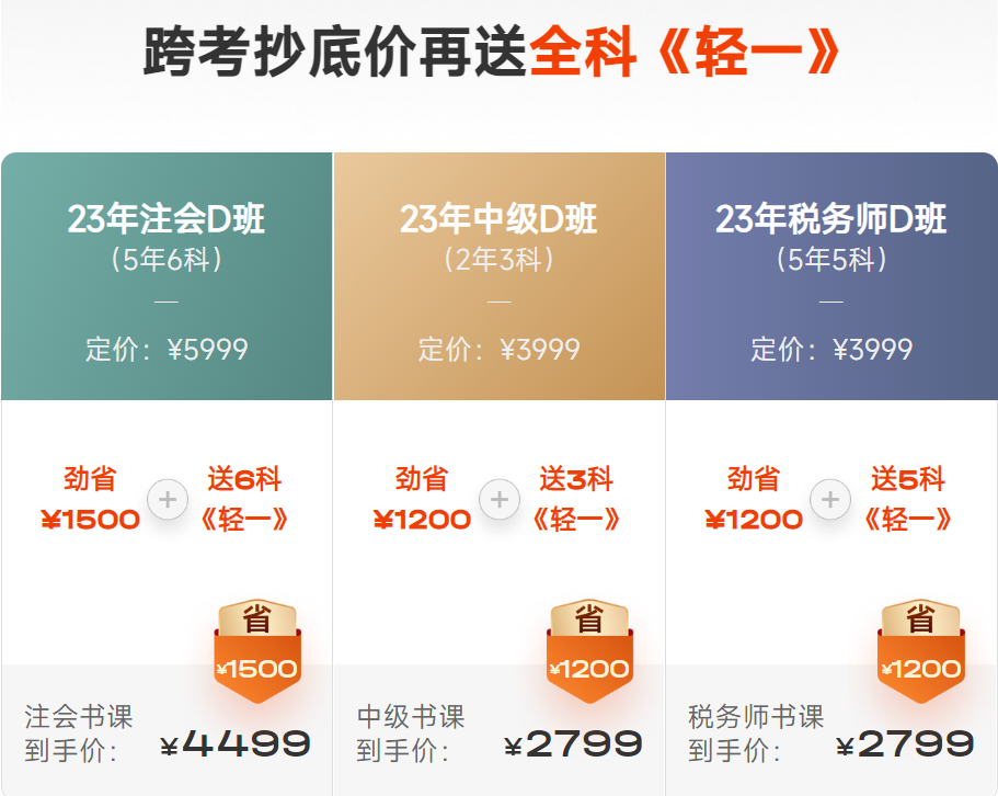 在2021年5月10日-2022年9月30日期間,購買了初級22、23考季《輕一》及組合的東奧初級學(xué)員,只需再花1元錢,即可成為【東奧會員】。在購買中、注、稅三大考種的課程時(shí),可享受超低優(yōu)惠,并獲贈對應(yīng)考種的全科《輕一》實(shí)體書!