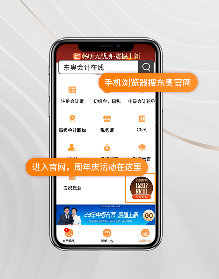 想要了解更多周年慶活動內(nèi)容,手機(jī)端考生請?jiān)跒g覽器中搜索東奧官網(wǎng),進(jìn)入官網(wǎng)后點(diǎn)擊下方懸浮圖標(biāo)即可。