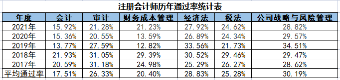 注冊(cè)會(huì)計(jì)師歷年通過(guò)率統(tǒng)計(jì)表