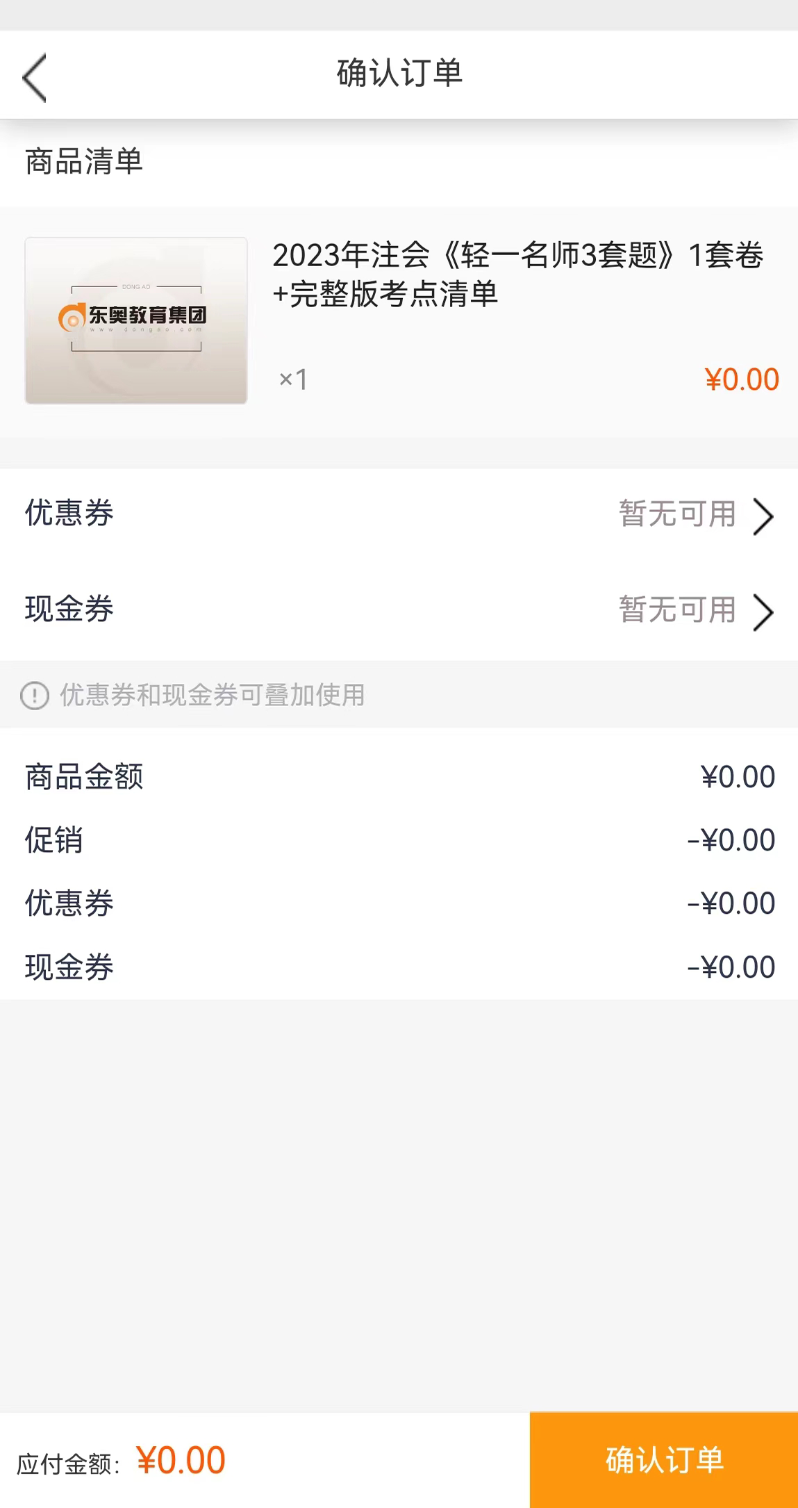 點擊“點擊0元領(lǐng)取”按鈕,登錄加入購物車后,確認訂單并完成結(jié)算。