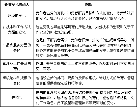 在企業(yè)中,隨著時(shí)間的流逝,將會發(fā)生一些變化。變化可能來自外部環(huán)境或內(nèi)部環(huán)境。大多數(shù)情況下,以下幾種變化可能會成為公司戰(zhàn)略變革的主要?jiǎng)右颍?/P>