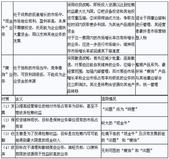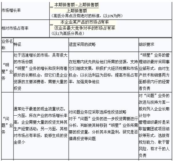 (1)在實踐中,企業(yè)要確定各業(yè)務的市場增長率和相對市場占有率是比較困難的。