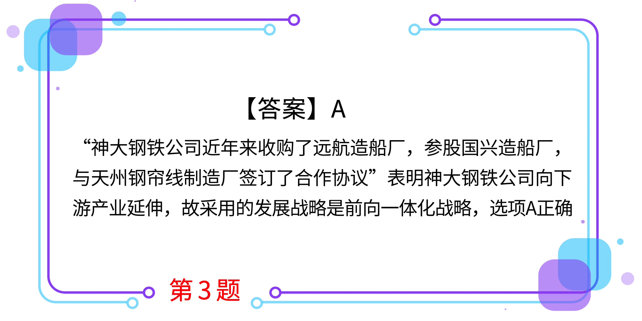 3.為克服對客戶需求的變化缺乏敏感性、公司結(jié)構(gòu)性產(chǎn)能過剩等問題,神大鋼鐵公司近年來收購了遠(yuǎn)航造船廠,參股國興造船廠,與天州鋼簾線制造廠簽訂了合作協(xié)議。神大鋼鐵公司的發(fā)展戰(zhàn)略是( )。(2017年)